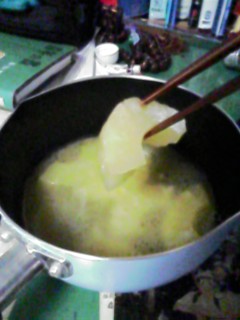パイナップル缶の汁でパイナップルとさつまいもを煮て、バターを投げ込むんですけど、今回はさつまいも使うのが面倒臭かったので、ただのパイナップル煮になりました。味気ないです。